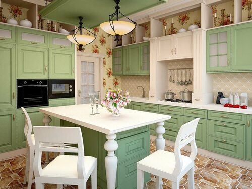 Кухня в стиле Прованс отличается уютом, натуральностью и легкостью. Фисташковые оттенки добавляют интерьеру нежности и свежести, создавая атмосферу спокойствия и гармонии.