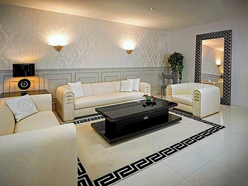 Гостиная в стиле Версаче представляет собой идеальное сочетание роскоши, изысканности и элегантности. Этот стиль отличается яркими цветами, богатыми тканями, драгоценными материалами и утонченными деталями.