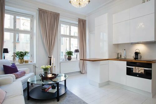 Оформление интерьера студии с двумя окнами на одной стороне предполагает использование легких и ярких оттенков, чтобы максимально воспользоваться естественным освещением. Мебель и декор в таком интерьере обычно подбираются с учетом особенностей освещения и расположения окон, чтобы создать гармоничное и уютное пространство.