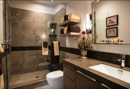 Коричневая цветовая гамма в ванной комнате может придать интерьеру особый шарм и теплоту. Оттенки коричневого могут быть разнообразными - от светлых до темных, что позволяет создавать различные стили и настроение в помещении.