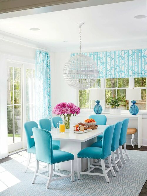 Бирюзовые стулья отлично сочетаются с нейтральными тонами интерьера, создавая контраст и придавая пространству живой акцент. Они могут быть использованы как в современных, так и в классических интерьерах, добавляя в них нотку свежести и оригинальности.