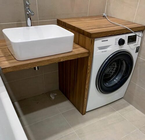 Варианты тумбы под стиральную машину с деревянной столешницей