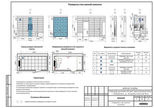 Развертка санузла рабочий чертеж