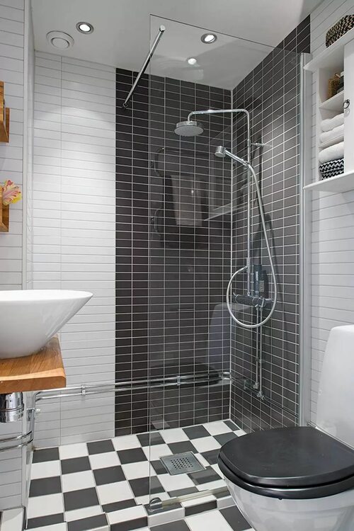 Идеи дизайна ванной комнаты с туалетом и душевой кабиной с поддоном