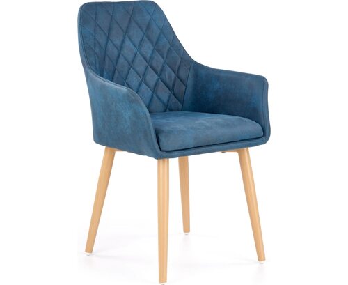 Стул с деревянными ножками и голубой обивкой - отличный выбор для интерьера в скандинавском стиле. Этот стул сочетает в себе функциональность, комфорт и стильный дизайн.