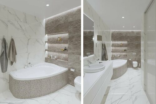 Современный дизайн ванной с угловой ванной предлагает множество интересных и стильных решений, которые помогут создать уютную и функциональную ванную комнату.
