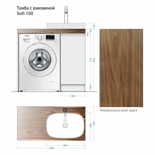 Накладная раковина на столешницу и стиральная машина под столешницей