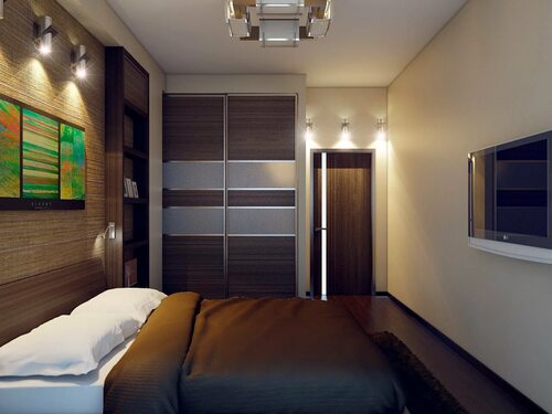 Узкая спальня 9м2 интерьер