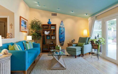 Бирюзовый и песочный цвета могут быть использованы как основные цветовые акценты в интерьере, а также в дополнительных элементах декора, таких как подушки, покрывала, картины и другие предметы. Эти цвета прекрасно сочетаются с нейтральными оттенками, создавая гармоничное и стильное пространство.