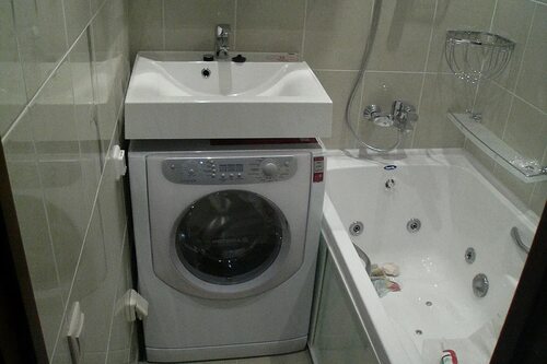 Маленькая ванная стиралка под раковиной