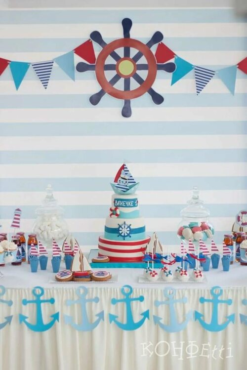 Для начала, подумайте о цветовой гамме. Основные цвета морского стиля - синий, белый и бирюзовый. Вы можете использовать эти цвета для украшения стен, столового белья, шаров и других декоративных элементов. Добавьте морские мотивы - ракушки, якоря, рыбы, маяки - для создания атмосферы морского приключения. И не забудьте про подходящие аксессуары, такие как морские сувениры, мягкие игрушки в виде морских обитателей и фонарики в виде маяков.