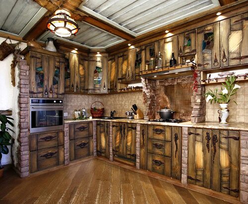 Кухня из состаренного дерева