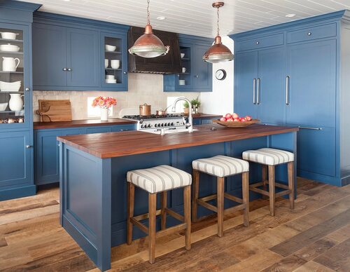 Кухни в синем цвете с деревом