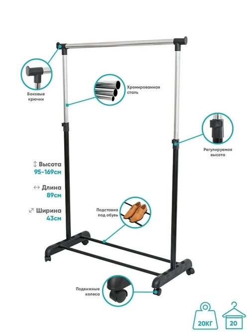 Вешалка напольная 90-134х54х117-200 см, металл, цвет хром