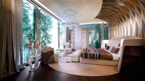 Спальня в стиле бионика представляет собой уникальное сочетание современного дизайна и технологий с органическими формами и элементами. Этот стиль отличается своеобразной эстетикой, инновационными материалами и функциональными решениями, которые создают атмосферу комфорта и современности.
