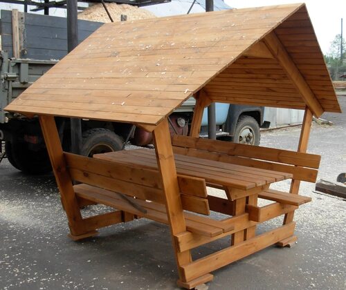 Скамейки со столом под крышей