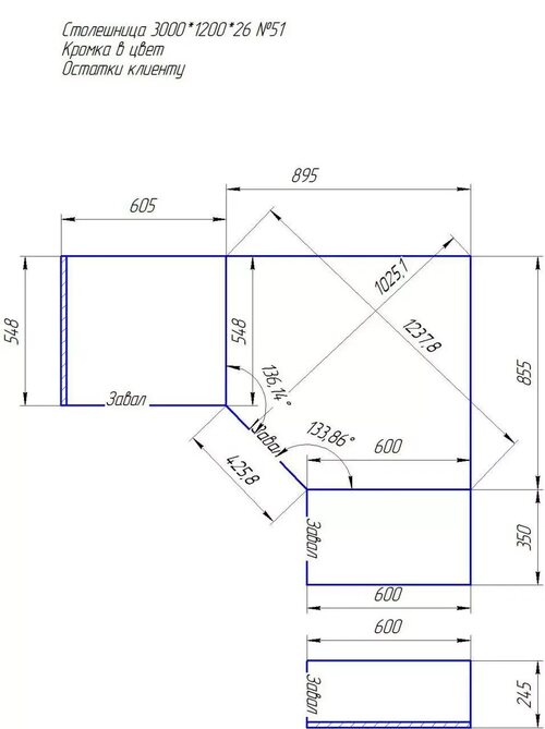 Столешница трапеция 900 900 чертеж