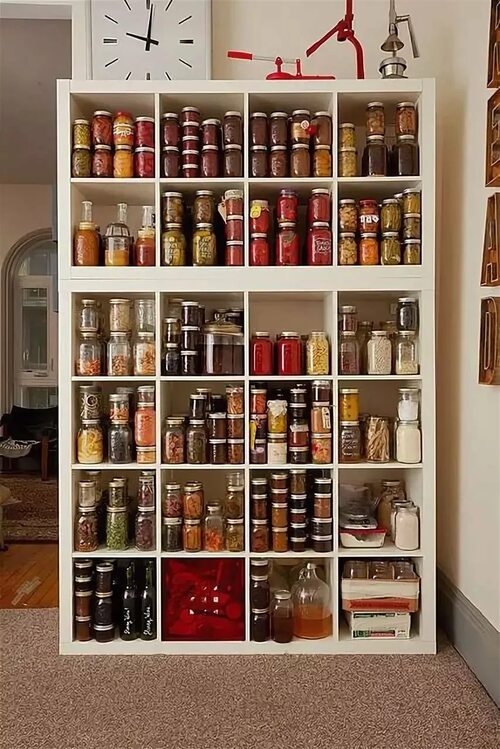 Стеллажи для банок в кладовке