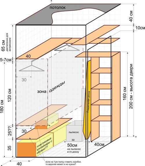 Шкаф скошен сбоку чертеж с размерами для одежды