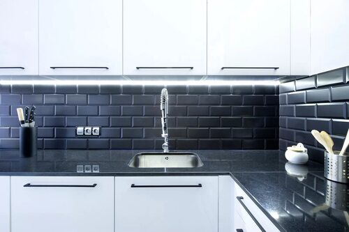 Черная плитка для фартука на кухню