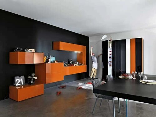 Кухня оранжевая с черным