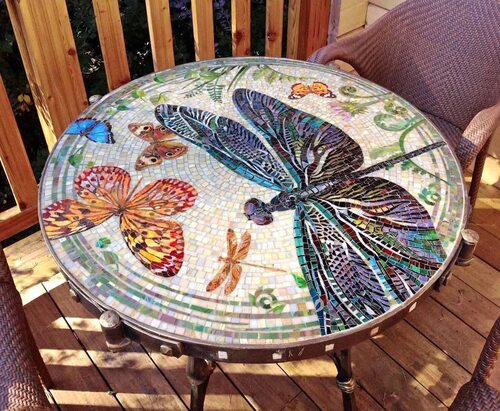 Стол декорированный мозаикой
