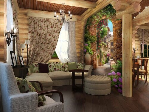 В гостиной деревянного дома фотообои могут стать центральным элементом декора. Рассмотрите варианты с изображениями деревьев, леса или морского побережья, чтобы добавить природную тему к вашему интерьеру. Также можно выбрать фотообои с геометрическими узорами или абстрактными композициями для современного вида.